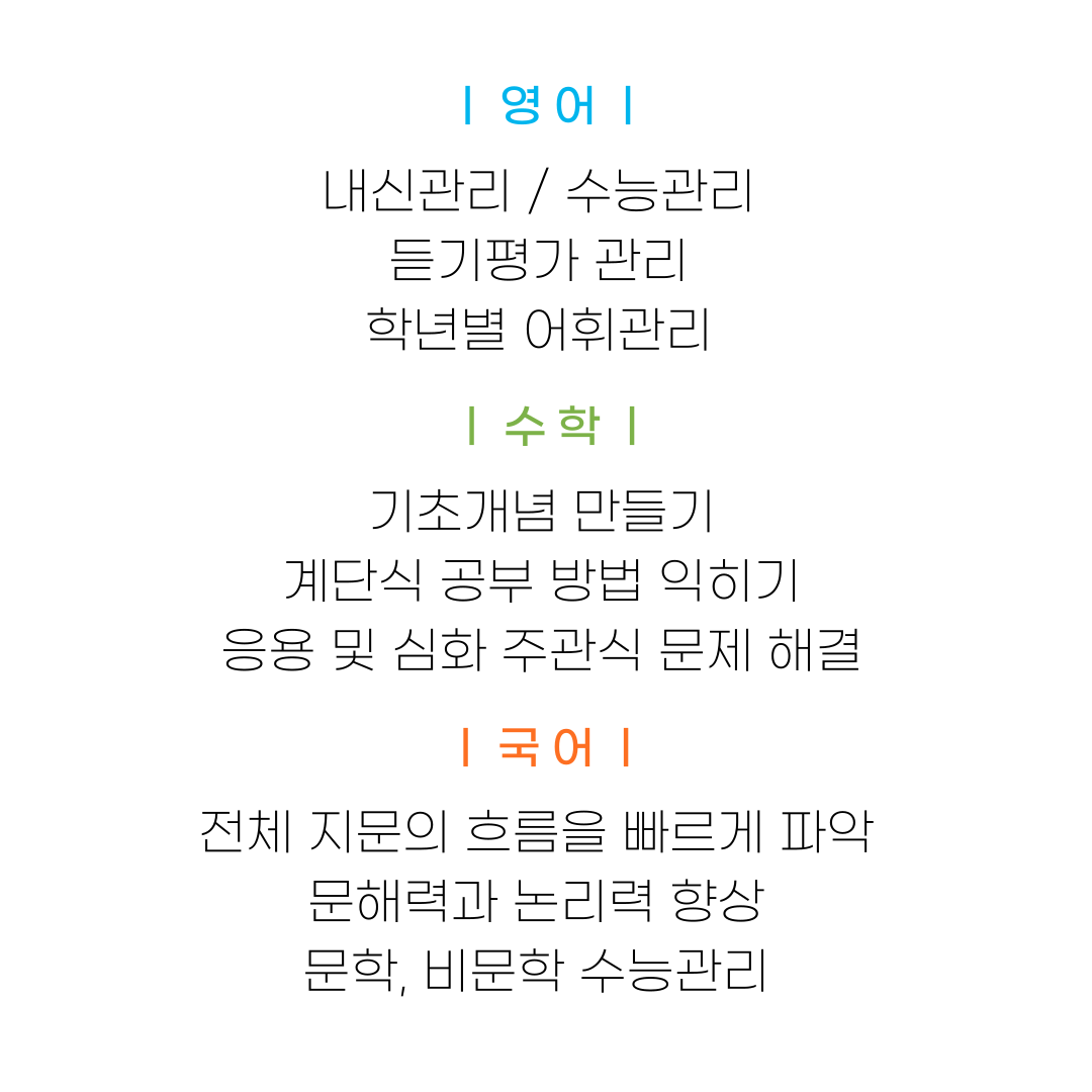 2. 5~10년 이상의 경력이 있고, 학생 성향을 고려한 남녀 선생님들께서 수업진행